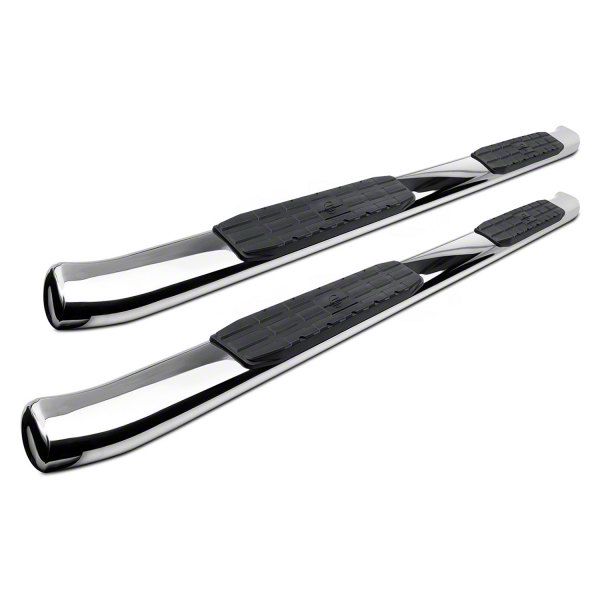 Durable and Precision-Engineered. Built using high-grade, 4-inch, oval stainless steel tubing, these 4X Series Side Step Bars exhibit high strength and excellent corrosion resistance. The anti-skid footpads are made of wear-resistant polyethylene with raised patterns to secure your footings. The 30-degree bends on each end eliminate the sharp edges for a neat and sleek appeal. Additionally, the steel frameworks are fortified by a polished stainless steel finish to resist rust formation and chipping, while stylishly enhancing your truck’s tough exterior.
