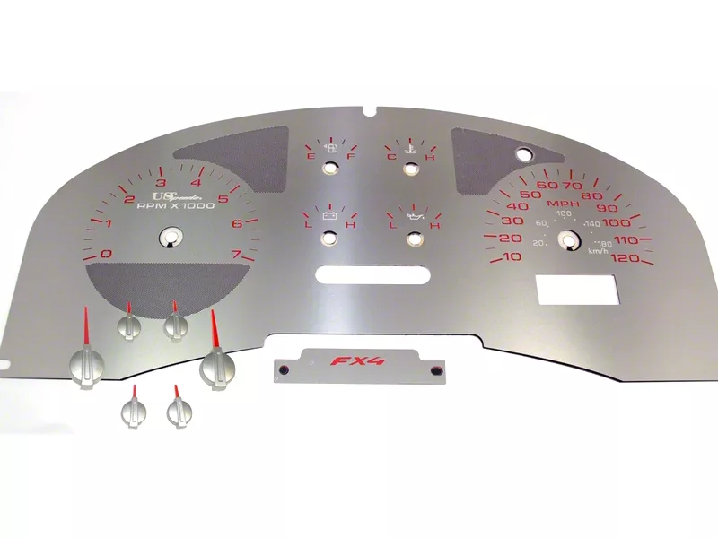 Application. Stainless Steel Gauge Face Kit fits the 2004-2008 FX4 and 2007-2008 FX2 F-150s and includes matching needles.
