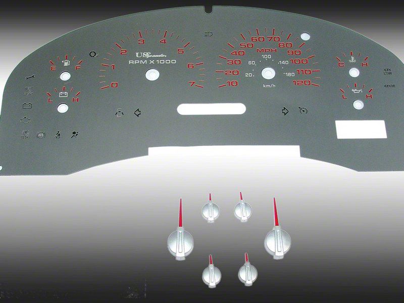 Application. Stainless Steel Gauge Face Kit fits all 2004-2008 Ford F-150 XLT and includes matching needles.