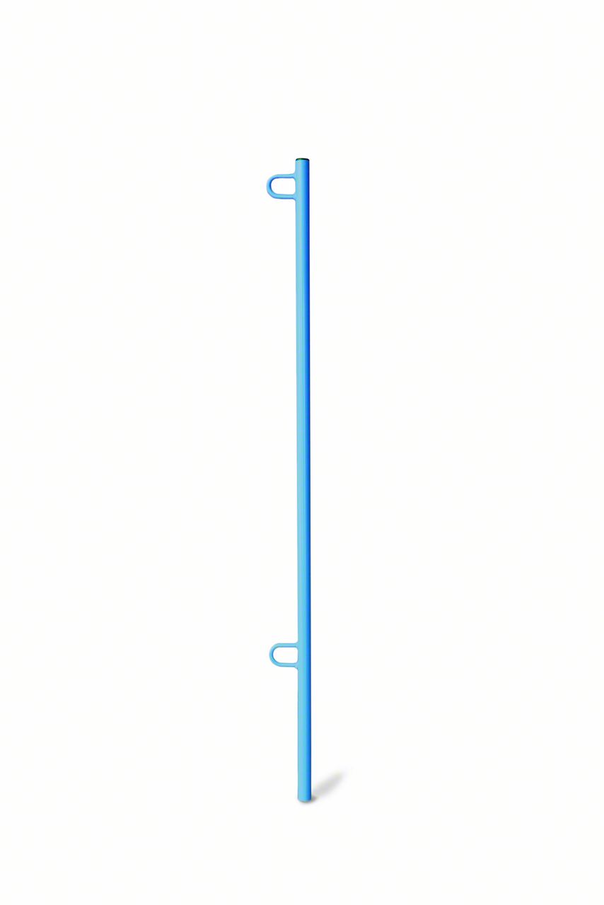 Construction and Design. This Flag Pole Kit is made from 1 inch OD x .120 inch wall tubing. Its playboy blue finish blends and there's a plastic cap at the top of the pole to keep water and dirt out. The spacing between loops is 34 inches, which means you can hang a variety of flags.