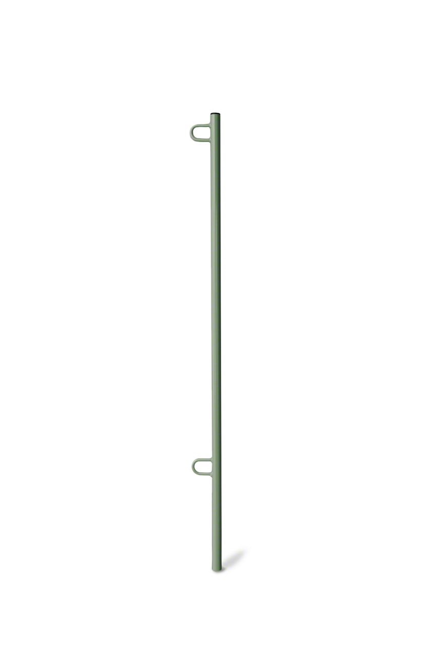 Construction and Design. This Flag Pole Kit is made from 1 inch OD x .120 inch wall tubing. Its locas green finish blends and there's a plastic cap at the top of the pole to keep water and dirt out. The spacing between loops is 34 inches, which means you can hang a variety of flags.