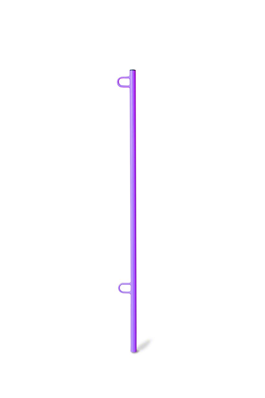 Construction and Design. This Flag Pole Kit is made from 1 inch OD x .120 inch wall tubing. Its Sinbad purple finish blends and there's a plastic cap at the top of the pole to keep water and dirt out. The spacing between loops is 34 inches, which means you can hang a variety of flags.