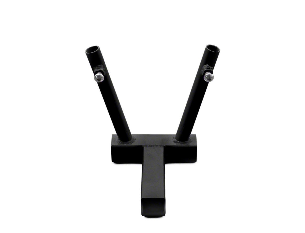 High-End Appearance. If you're looking for an easy way to proudly display the flags you fly, look no further than Steinjager's Bare Metal Hitch Mounted Dual Flag Holder. This high-quality flag holder features a design that securely holds up to 2 flags, ensuring you never have to leave your passion on the flagpole at home. With 3 offset holes that offer easy adjustment so that the flags are guaranteed to clear your rear bumper and spare tire, this holder works perfectly with your Vehicle's standard class 3 hitch for a convenient, easy display on the trails and in the streets.