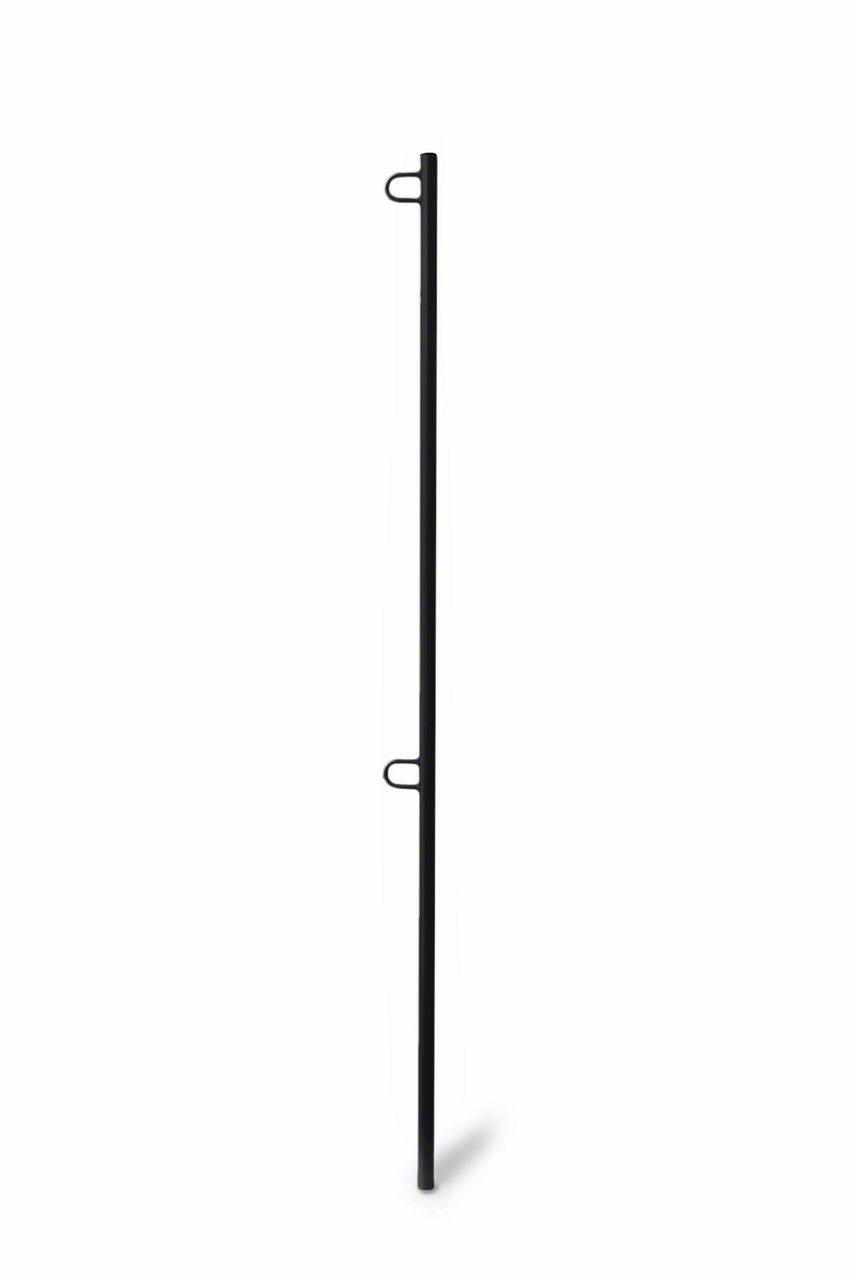 Construction and Design. This Flag Pole Kit is made from 1 inch OD x .120 inch wall tubing. Its bare metal finish blends and there's a plastic cap at the top of the pole to keep water and dirt out. The spacing between loops is 34 inches, which means you can hang a variety of flags.