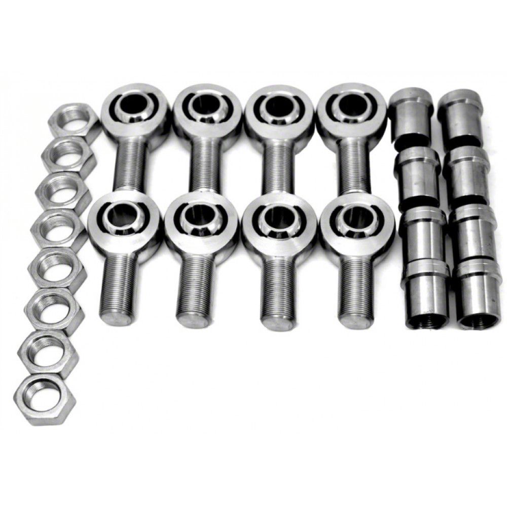 Kit includes:(8) 1.25-12 x 1.00 RH Heat Treated Chrome Moly Rod Ends(8) 1.25-12 RH Jam Nuts(8) 1.25-12 RH Weldable Thread Bung for 1.500 Inch ID Tubing