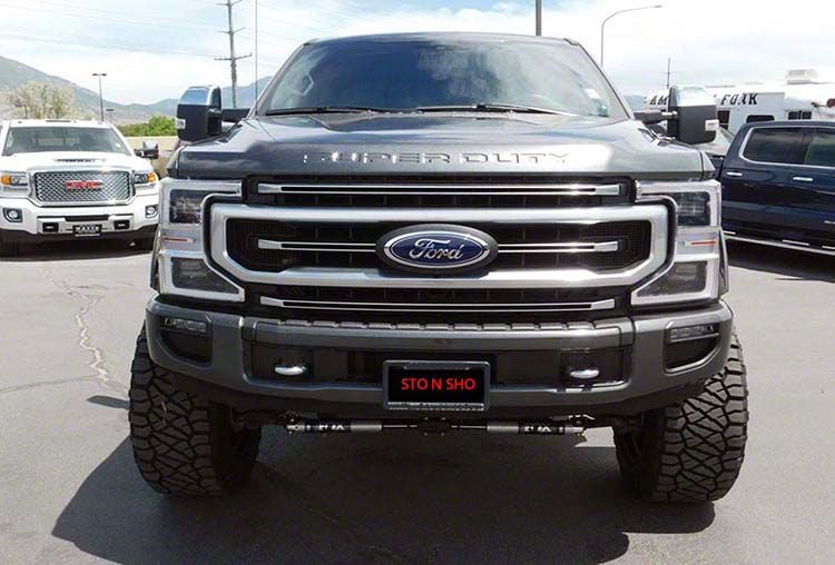 Application. The Sto N Sho Detachable Front License Plate Bracket fits 2021 F-350 Super Duty Tremor models.
