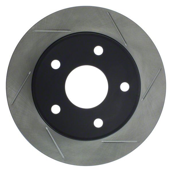 StopTech Slotted Sport Rotors are 1-piece direct replacement brake discs for factory brake systems and stock calipers that look great behind your wheels – and offer significantly improved braking performance. The unique slotting aids with heat and brake dust dispersal; prevents glazing of the pads; adds bite and improves wet and dry braking performance. Built to last; the black e-coating provides protection from corrosion and the high carbon metallurgy (in most applications) offers quieter operation; better crack resistance and increased performance.