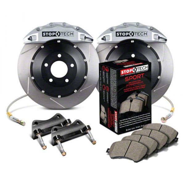 These Balanced Brake Upgrades put StopTech on the enthusiast map. They maintain factory bias while providing shorter stopping distances; better modulation and less brake fade. They include stiffer StopTech calipers; larger-than-stock 2-pc StopTech AeroRotors; StopTech Street Performance Pads and StopTech Stainless Steel Lines.