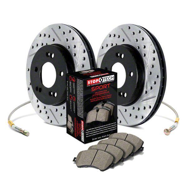 Description. Significant brake performance improvements using the factory calipers and pre-matched; direct-replacement (OEM) sized components. This StopTech Sport Axle Pack includes drilled & slotted StopTech Sport Rotors; StopTech Sport Pads and StopTech Stainless Steel Lines.