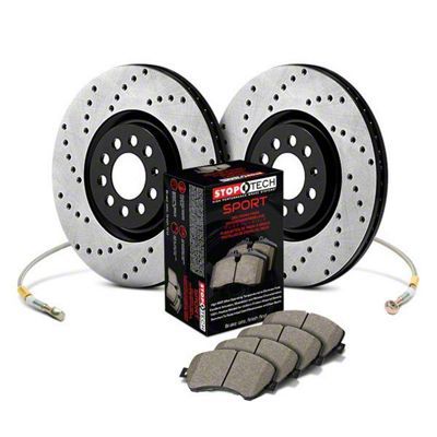 Description. Significant brake performance improvements using the factory calipers and pre-matched; direct-replacement (OEM) sized components. This StopTech Sport Axle Pack includes cross-drilled StopTech Sport Rotors; StopTech Sport Pads and StopTech Stainless Steel Lines.