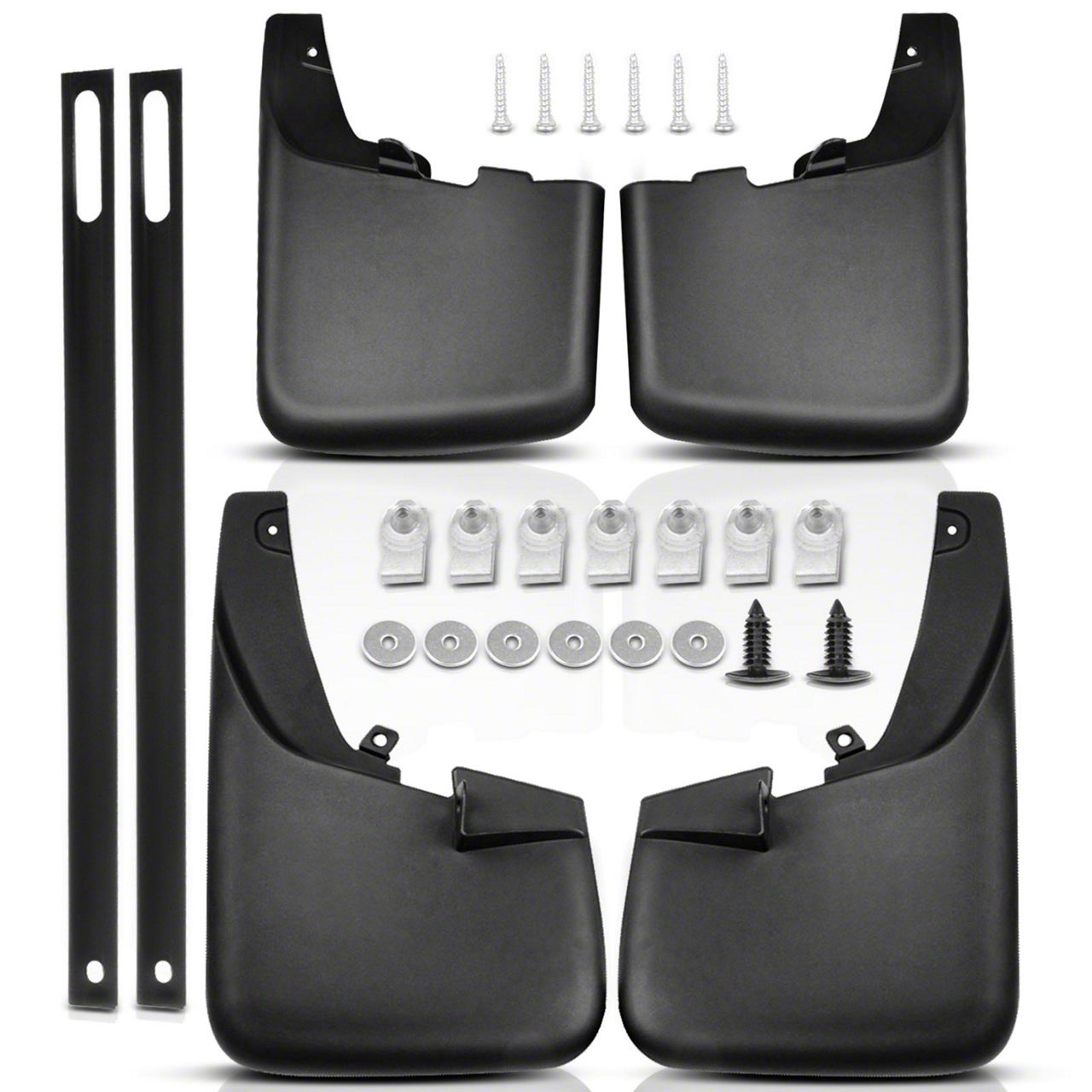 Clean and Protected. Boost your vehicle's defense against the elements with our premium Mud Flap Splash Guards. Designed for both front and rear placements, this set of four guards offers unparalleled protection from mud, dirt, ice, gravel, and road salt, keeping your vehicle clean and pristine in all driving conditions.