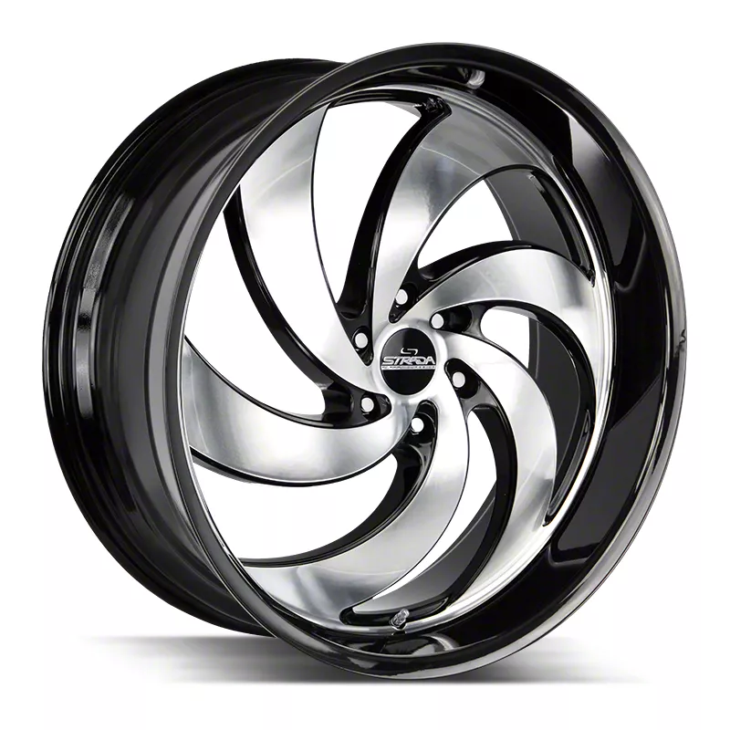 The 24x10 Strada Retro 6 Gloss Black Machined 6-Lug Wheel; 24x10; 24mm Offset is completed in a high-quality gloss black finish with steel machined accents, which is sure to turn heads. There is a durable clear coat for extra protection and enhanced appearance that can withstand the rigors of the road.