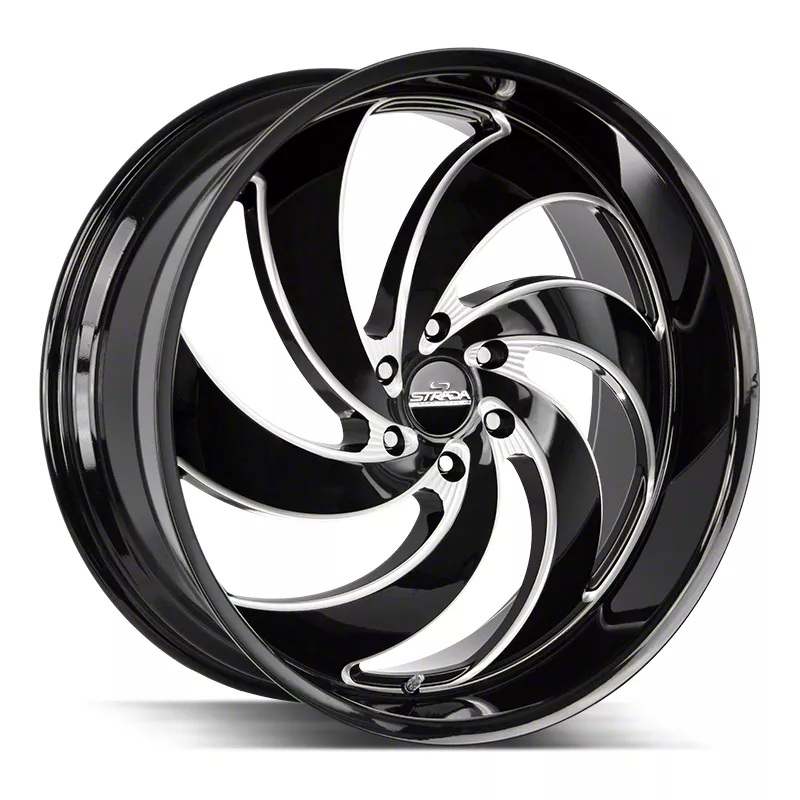 The 26x10 Strada Retro 6 Gloss Black Milled 6-Lug Wheel; 26x10; 26mm Offset is completed in a high-quality gloss black finish with steel milled accents, which is sure to turn heads. There is a durable clear coat for extra protection and enhanced appearance that can withstand the rigors of the road.