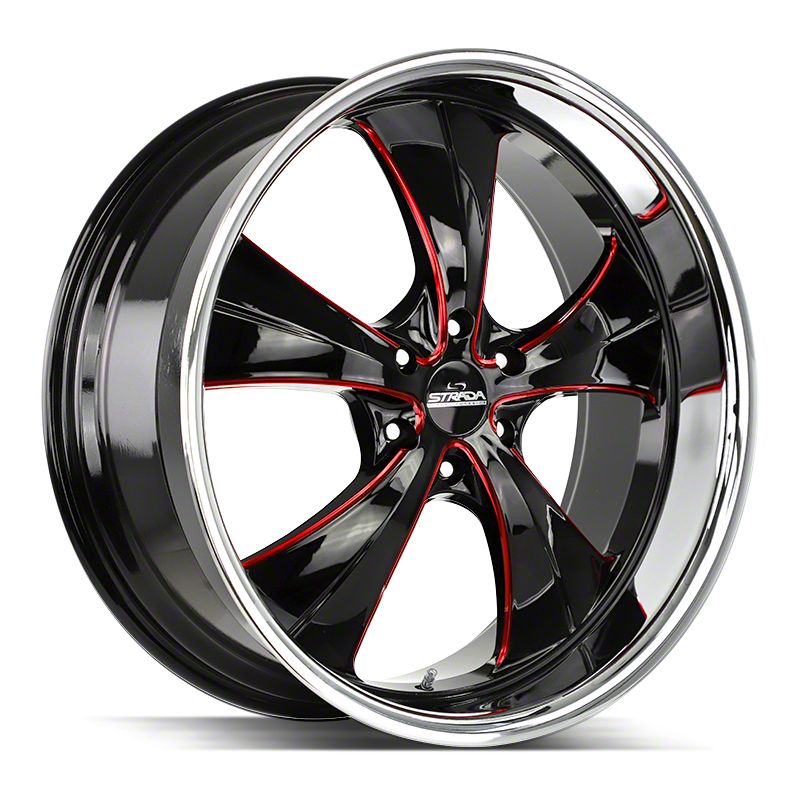 Application. This Strada Old Skool Gloss Black Candy Red Milled with Stainless Steel Lip 6-Lug Wheel; 24x10; 24mm Offset, with a backspace of 6.445 Inch, 163.7mm; and bolt pattern of 6 x 139.7mm (6 x 5.5-Inch), is designed to fit 2019–2026 RAM 1500 models. Sold individually.