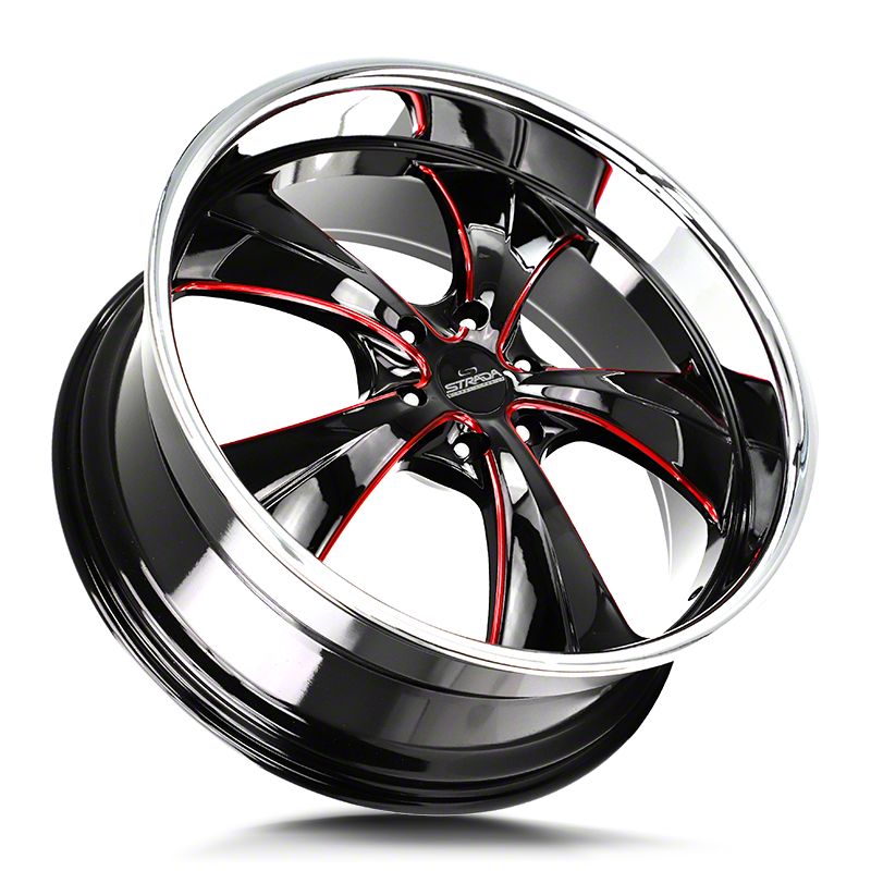 The 24x10 Strada Old Skool Gloss Black Candy Red Milled 6-Lug Wheel; 24x10; 24mm Offset is completed in a high-quality gloss black finish with candy red milled accents, which is sure to turn heads. There is a durable clear coat for extra protection and enhanced appearance that can withstand the rigors of the road.