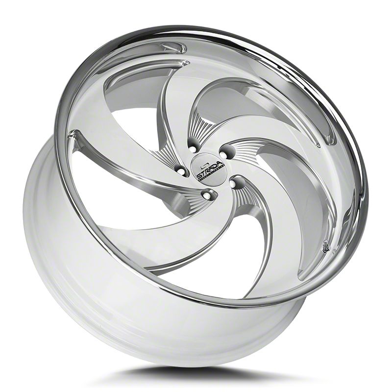 Strada Retro 5 Gloss White Milled with Stainless Steel Lip 6-Lug Wheel; 22x10; 24mm Offset offers a sleek and assertive aesthetic that enhances a vehicle's visual presence. Its gloss black finish amplifies the appeal, making it a great match for bold styling themes. This wheel brings a refined edge to any build while maintaining a confident stance on the road. Crafted to elevate the appearance of a wide range of vehicles.