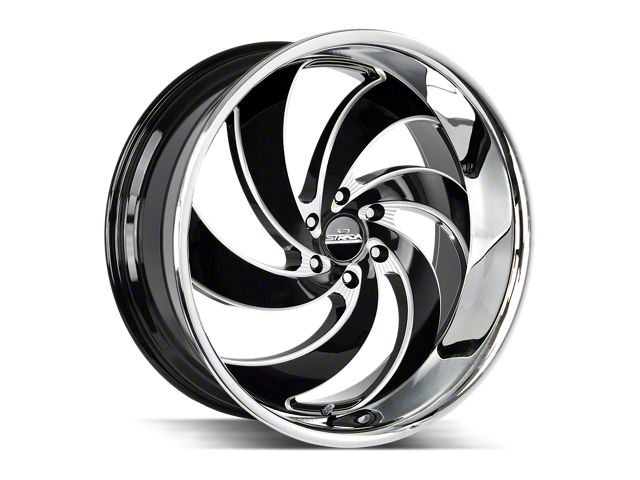 Strada Retro 6 Gloss Black Milled with Stainless Steel Lip 6-Lug Wheel; 26x10; 26mm Offset offers a sleek and assertive aesthetic that enhances a vehicle's visual presence. Its gloss black finish amplifies the appeal, making it a great match for bold styling themes. This wheel brings a refined edge to any build while maintaining a confident stance on the road. Crafted to elevate the appearance of a wide range of vehicles.