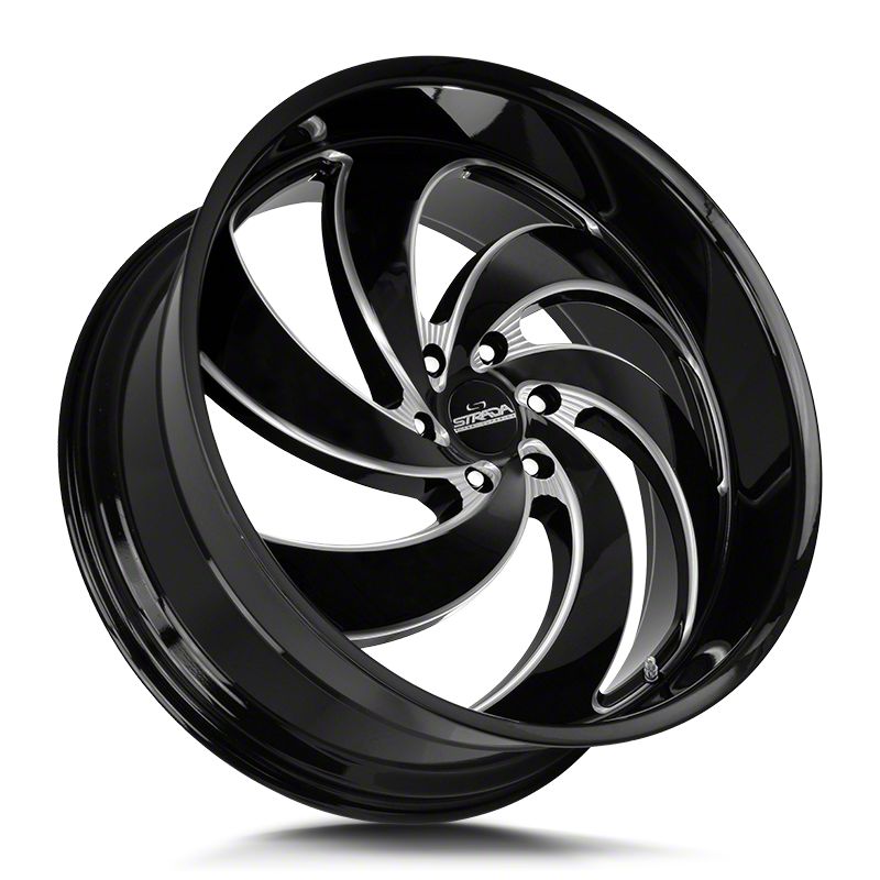 The 24x10 Strada Retro 6 Gloss Black Milled 6-Lug Wheel; 24x10; 24mm Offset is completed in a high-quality gloss black finish with steel milled accents, which is sure to turn heads. There is a durable clear coat for extra protection and enhanced appearance that can withstand the rigors of the road.