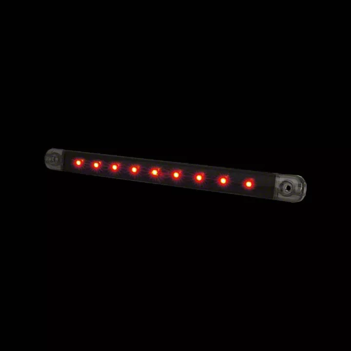 Sleek LED Marker Light. The Strands Lighting 9-Inch Dark Knight Slim Marker LED Light enhances vehicle visibility and safety while adding a stylish, modern look. It is designed with a low-profile, dark aesthetic and utilizes red LED lights, making it perfect for those who want both performance and a distinct appearance.