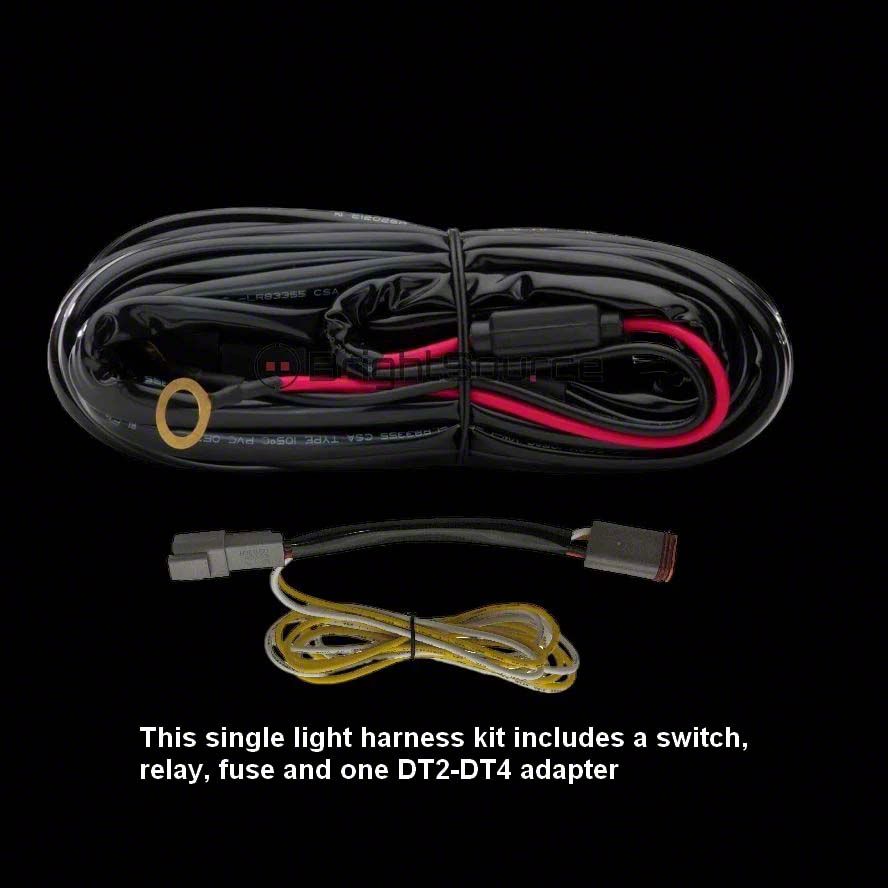 - Waterproof plug and play harness includes a Deutsch connector, relay, in-line fuse and switch
