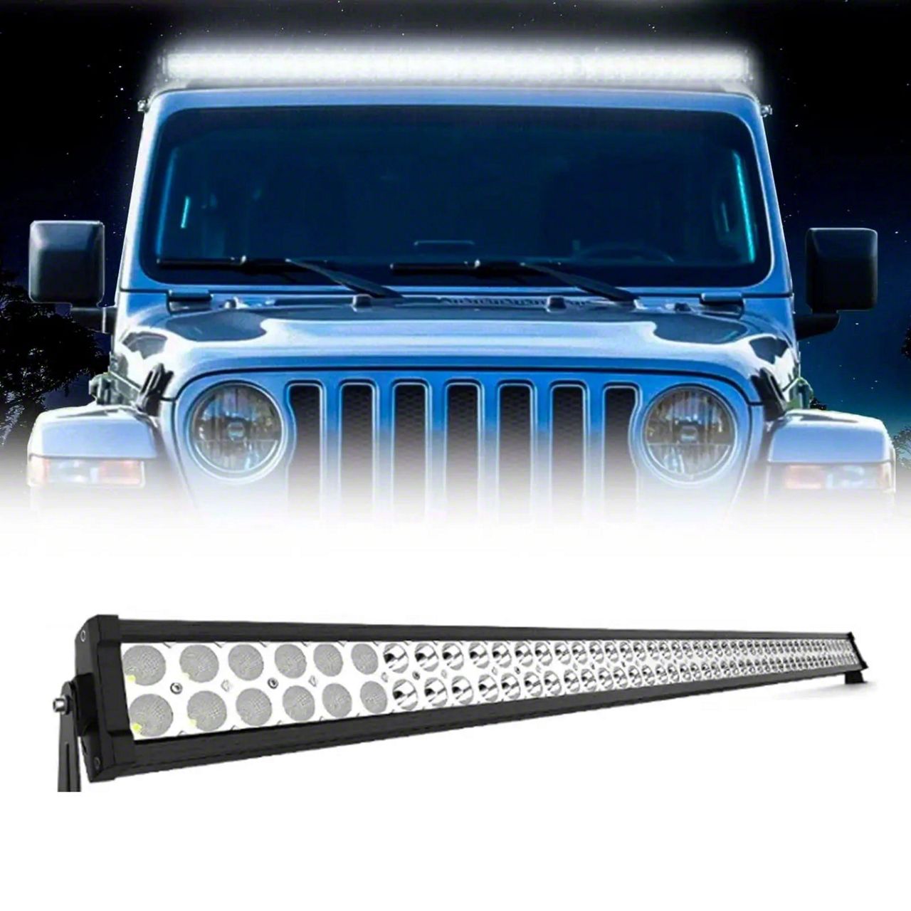 Easy Upgrade. Gain the lighting you need without drilling or modifying your Wrangler . Our light bars feature high-intensity LEDs that output 30,000 lumens. The rugged construction of our light bars is perfect for the roughest terrain. Featuring a die-cast aluminum housing with a polycarbonate lens, made for the muddiest trails.Features:Durable Black powder coat finish52" Light Bar mounting bracketsSolid steel construction, one-piece fully welded design for extra strengthPerfectly match with original mounting pointsincludes rubber gaskets to prevent damaging car paint