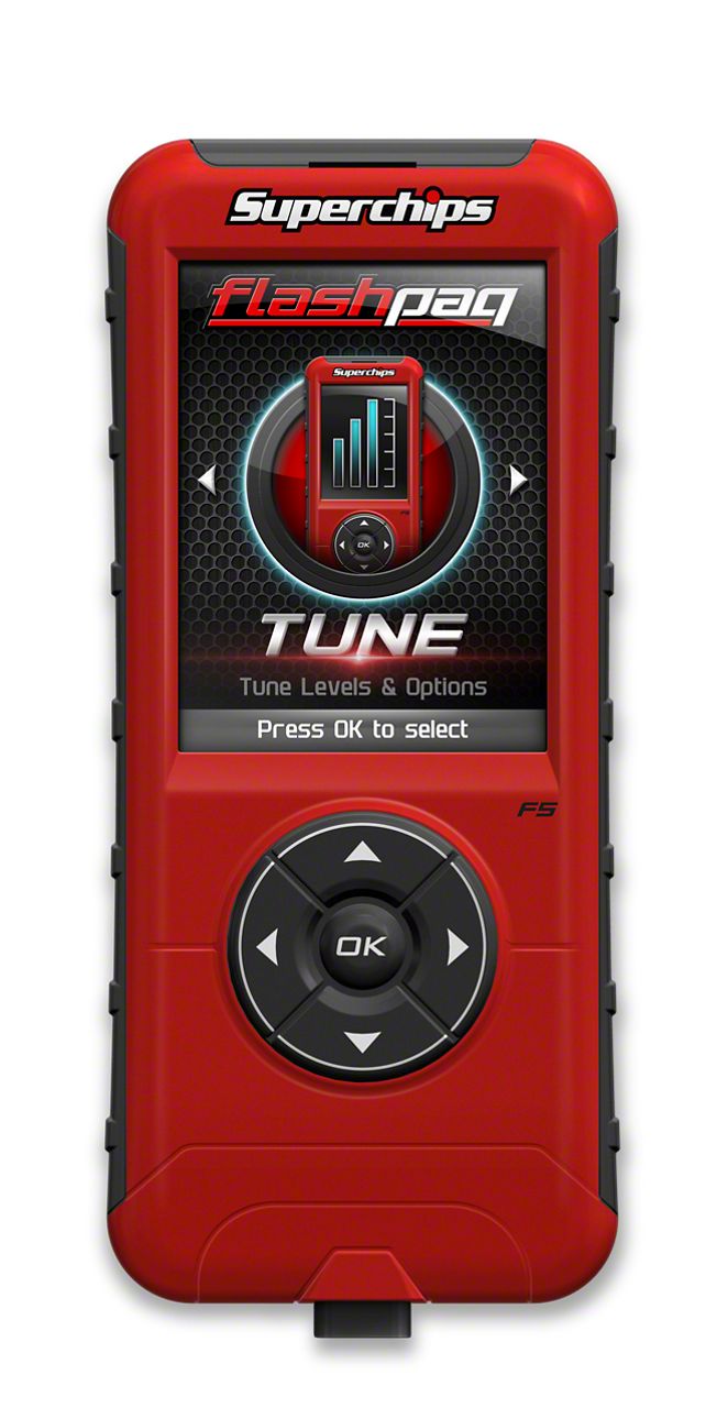 Advanced Tuning Features. The Superchips Flashpaq F5 Tuner has a 2.8-inch high definition display with simple tactile navigation keys for ease of use. You can plug it directly into the OBD port under your dashboard for instant access to your onboard computer.