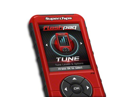Adjustable Parameters. The Superchips Flashpaq F5 California Edition Tuner features end user adjustable parameters so you can customize the tune and maximize the performance of custom modifications you've made to your 5.0L F-150. These parameters can be adjusted on the Superchips Flashpaq F5 Pre-Configured Tunes and/or the stock tune. Please note not all adjustments are available on all models/vehicles.