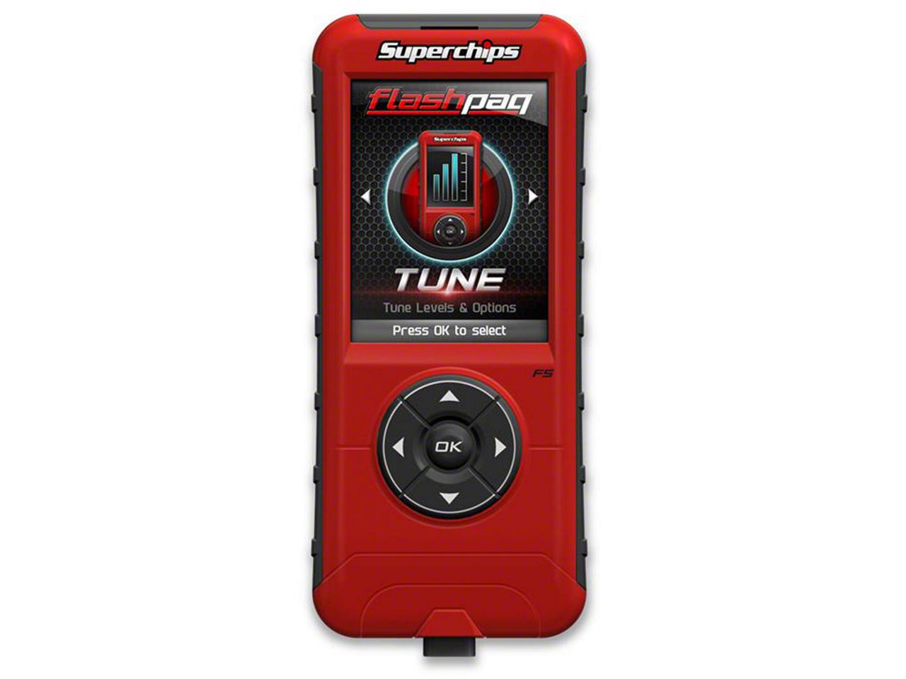 Compact, Convenient and Efficient. Featuring a full color, 2.8 in. high definition screen, this Superchips Flashpaq F5 Tuner has a slim, sleek design that makes it easy to handle and store in your center console or glove box when not in use. Not only is it compact, but its exceptionally graphic interface provides an improved user experience, when compared to the older Flashpaq F4 model. Powered by your Sierra's OBD-II port or USB connection when connected to your PC/Windows computer, this F5 Tuner features increased memory with a high speed processer to provide extraordinary tuning and updating speed.