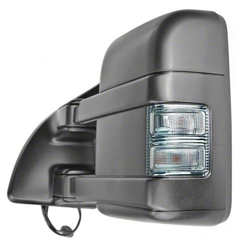 OEM Style Replacement Towing Mirrors. Replace your F-250 Super Duty's cracked or broken towing mirrors with a brand new OEM style replacements. These manual telescoping, manual folding and power-operated towing mirrors are designed to replace the heated mirrors found on 2011-2012 Ford F-250 Super Duty models equipped with temperature sensor, and mirror mounted turn signals.