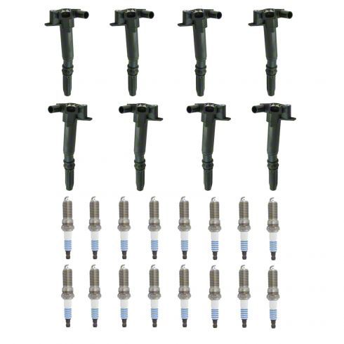 Complete Kit. This 24-Piece Ignition Kit is an extraordinary replacement kit that will help your truck's overall performance. Consisting of 16 Double Platinum Motorcraft spark plugs and 8 ignition coils, this kit is a complete upgrade or replacement made of premium materials.