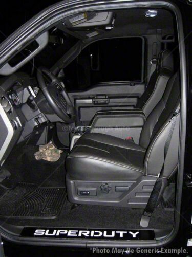 Application. This pair of Billet Front Door Sill Plates with SuperDuty Logo in Black Finish with Blue Illumination is engineered to fit all 2011 to 2016 Ford F-250 Super Duty models.
