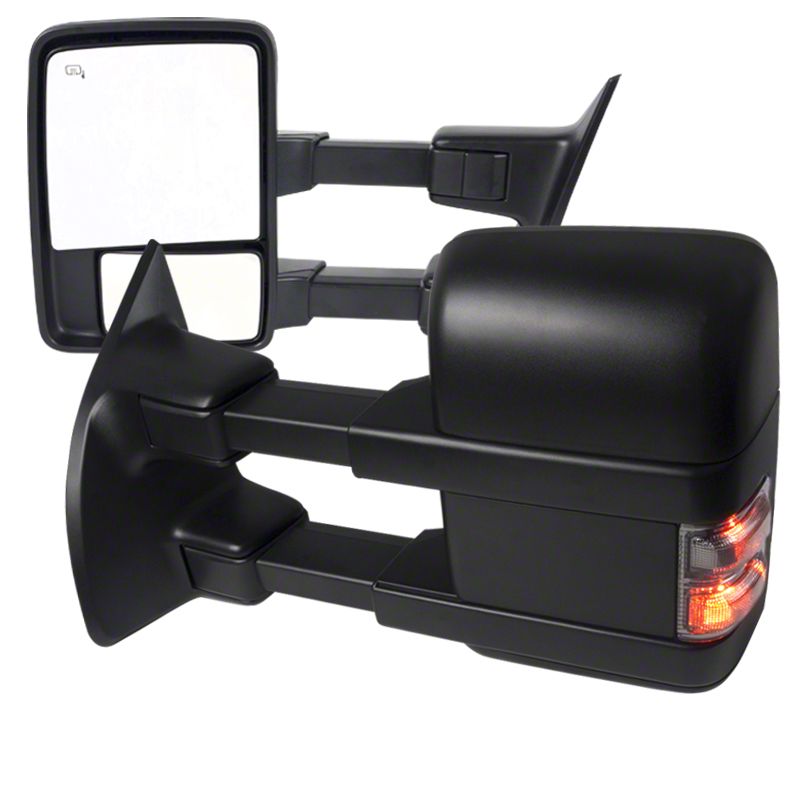 Reliable Lighting. These Towing Mirrors feature integrated amber LED turn signal lights on the front and back side of the housings and LED clearance lights. The brilliant LEDs will guarantee that your truck is clearly visible during the day or night.