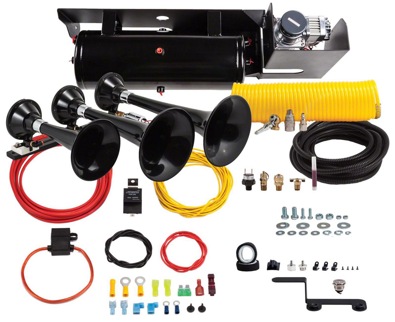 Simple Bolt-On Installation. Setting up this onboard air system with triple air horn is easy, thanks to its bolt-on design. However, to ensure proper installation, you need to have light to moderate mechanical skills. No drilling or welding is required.