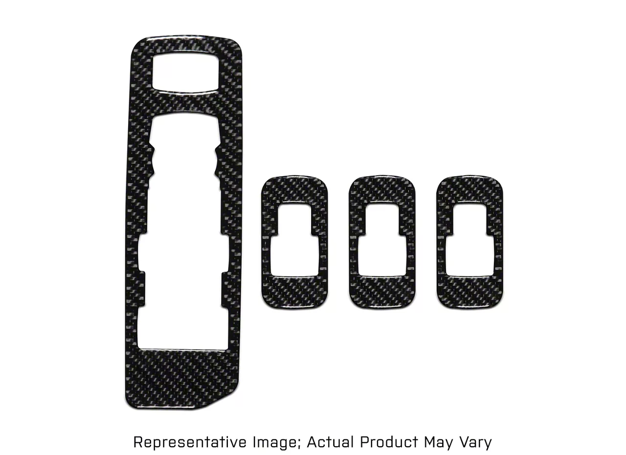 Interior Style Enhancement. This Door Switch Accent Trim; Raw Carbon Fiber will provide a little style boost to the interior of your Super Duty. This 4-piece kit fits snuggly on the door switches, making for an amazing appearance.