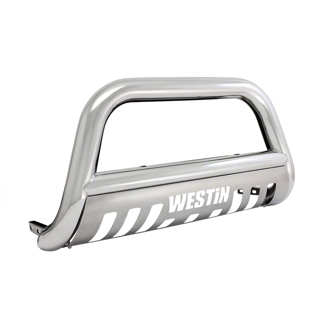 Bolder Off-Roading. Prepare for the roughest off-roading demands by equipping your Super Duty with the E-Series Stainless Steel Bull Bar. This front armor features a tubular bull bar with a removable, brushed skid plate that stylishly outlines your truck’s contours. The appealingly aggressive design and front coverage of this bull bar-skid plate assembly will protect you, your passengers, and your truck from impacts and collisions.