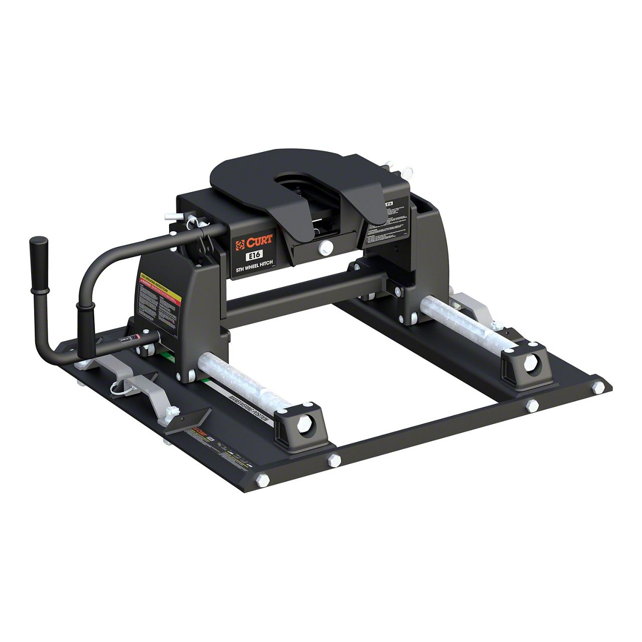 Quiet Power. The E16 5th Wheel Trailer Hitch with Puck System Roller was built to give your Super Duty a relatively quiet ride with awesome towing power. The key components in success are: a single-throw handle, dual-pivoting head, 10 degrees of lateral movement and anti-rattle skid plate.