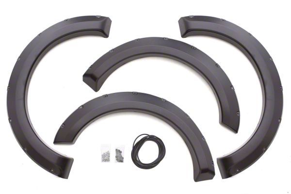 Excellent Style and Protection. Let your truck sport a more aggressive and captivating look by equipping it with these Textured Elite Series RX-Rivet Style Fender Flares. These fender flares offer excellent style with their rivets and textured black finish. Furthermore, these accessories help fortify your wheel well area’s protection against varying road hazards. Thanks to their high-strength build, these fender flares are able to deflect road debris away from your fenders, keeping their components safe and intact.