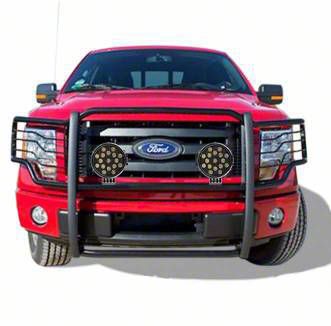 Grille Guard and Headlight Kit. Installing this Grille Guard with 7-Inch Round LED Lights; Black on your Ford F-250 is an excellent way to add aggressive, off-road styling to your rig. Specifically designed to protect your headlights and grille from road and trail hazards, this Grille Guard is perfectly suited for F-250's that pull double duty on and off road.