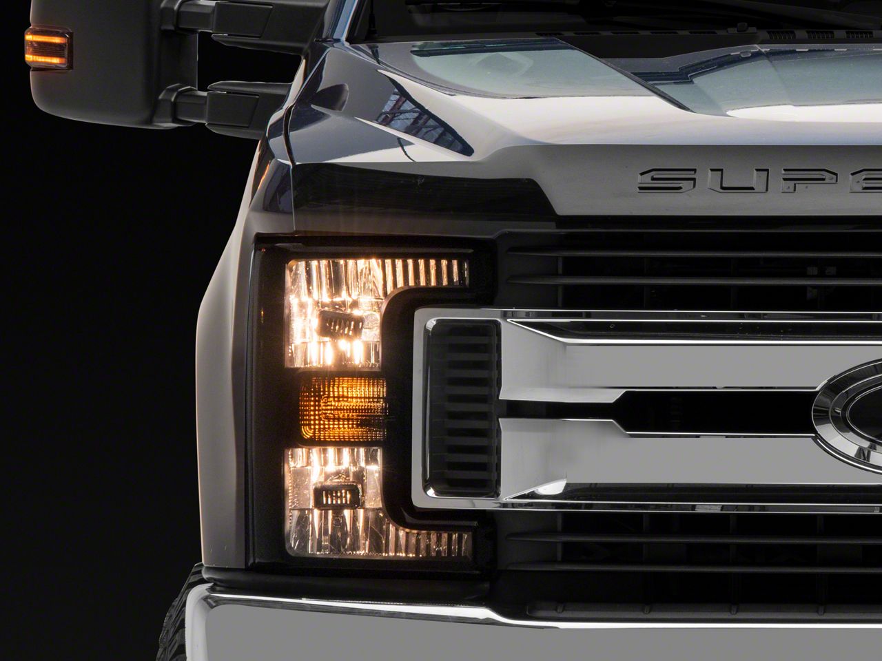 Dynamic Blacked-Out Look. These Smoked Headlights with Clear Corners are the perfect headlight replacement if you’re looking to give your Super Duty a blacked-out front end style. These headlights’ combination of smoked lenses and black-colored housings work to create an unmistakably dark style for your truck’s front end. These headlight assemblies are not all about looks though, as specialized reflectors ensure the light is projected as efficiently as possible.