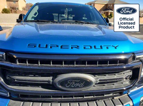 Enhances Your Truck’s Look. Let your truck sport a fresh new look by adding these Matte Black Hood Insert Letters. Featuring individually cut “SUPER DUTY” decals, these hood insert letters are designed to fit and cover your hood’s factory emblem. These matte black insert letters not only enhance the look of your emblem but also help hide its existing scratches and blemishes.