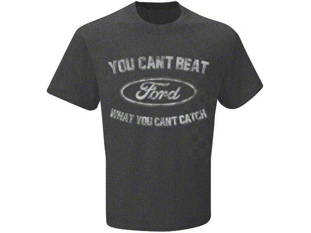 Ford Themed Graphic T-Shirt. This great looking gray short sleeve t-shirt is a must have for all Ford enthusiasts. Officially licensed, this graphic tee features the Ford Oval logo with the text "You Can't Beat What You Can't Catch". This T-Shirt makes the perfect gift for yourself or the fellow Ford lover in your life.