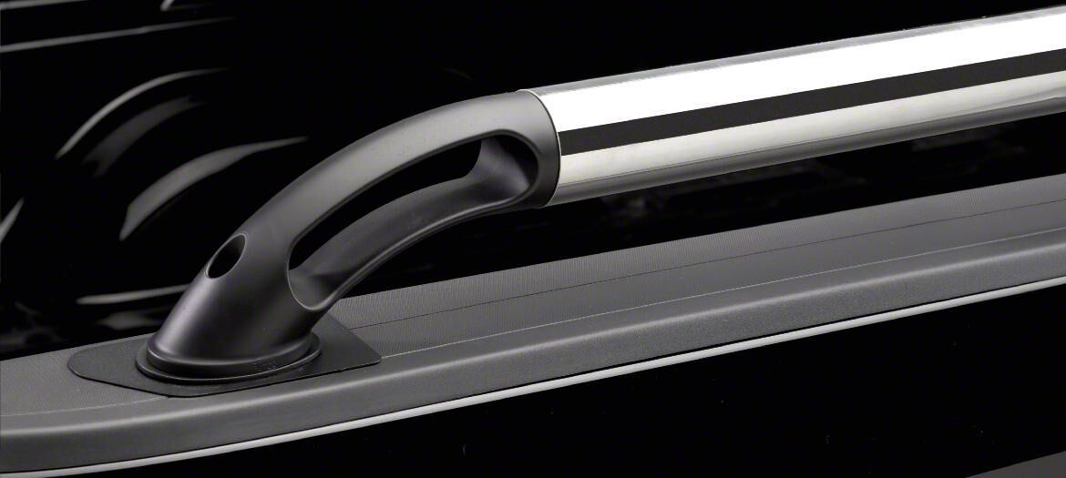 Functional Step and Sidewall Protection. These nylon composite rails provide a sturdy stepping surface while guarding the bed’s sidewall from cargo impact and wear. The textured finish hides scratches, and integrated rubber pads deliver confident footing even when wet or muddy. Their clamp-on design installs in minutes, leaving the bed rails intact and reversible when needed.