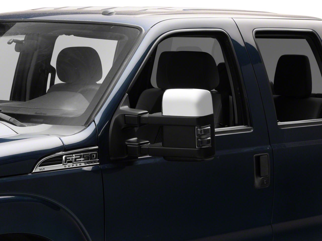 OEM Style Replacement Towing Mirrors. Replace your F-250 Super Duty's cracked or broken towing mirrors with a brand new OEM style replacements. These power telescoping, power folding and power-operated towing mirrors are designed to replace the heated mirrors found on 2011-2016 Ford F-250 Super Duty models equipped with memory function, temperature sensor, and mirror mounted turn signals.