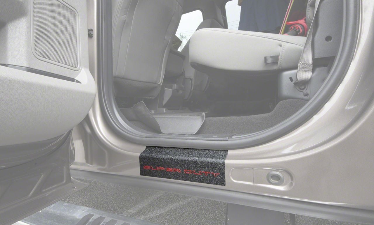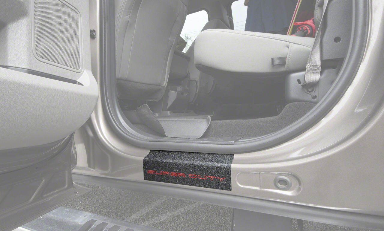 Rear Door Sill Protectors. Add a more expensive, upscale appearance to your Super Duty's interior with a set of Rear Door Sill Protectors that promote the Super Duty logo. These Tuf-Liner Series Door Sill Protectors feature a similar look to spray in bed-liner and will protect your F-250's sills from scratches, dirt, rocks, and chipping paint. These Door Sill Protectors are an affordable and simple way to personalize your SuperCrew F-250 Super Duty.