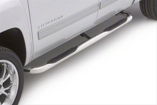 Classic Side Access Upgrade. The Three-Inch Round Bent Nerf Side Step Bars offer a time-tested, functional addition to your F-250 Super Duty SuperCrew. With a polished finish and sturdy round-tube construction, these steps provide reliable entry support while complementing your truck's rugged styling.