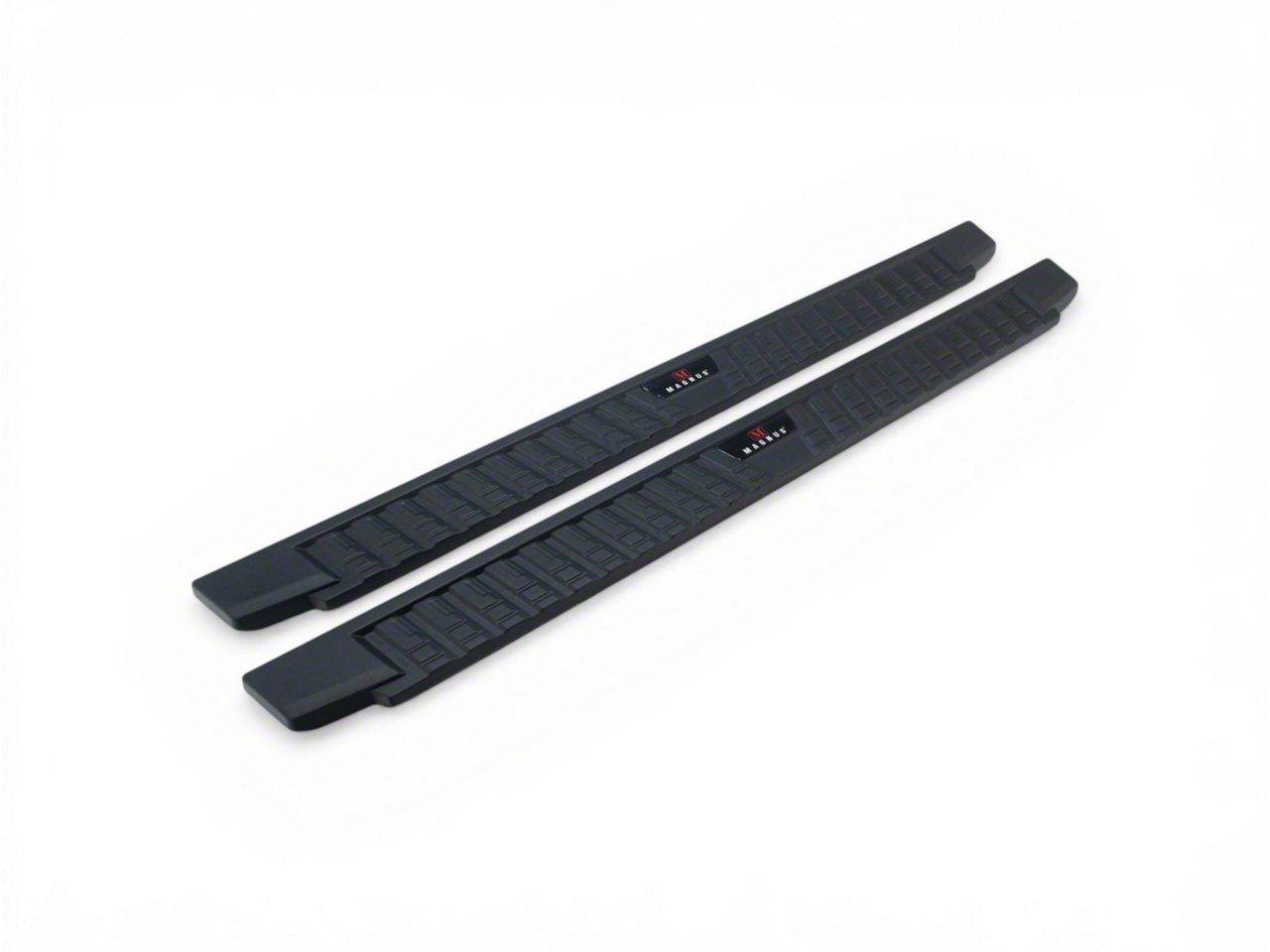 Non-Slip Step. On top of its rigid carbon steel construction, these Running Board feature a tough look that use deep geometric treads on polyethylene synthetic pads to ensure ample traction between your soles and the board. It scrapes off any mud and allows water to flow through, preventing any accidental slides with your step.