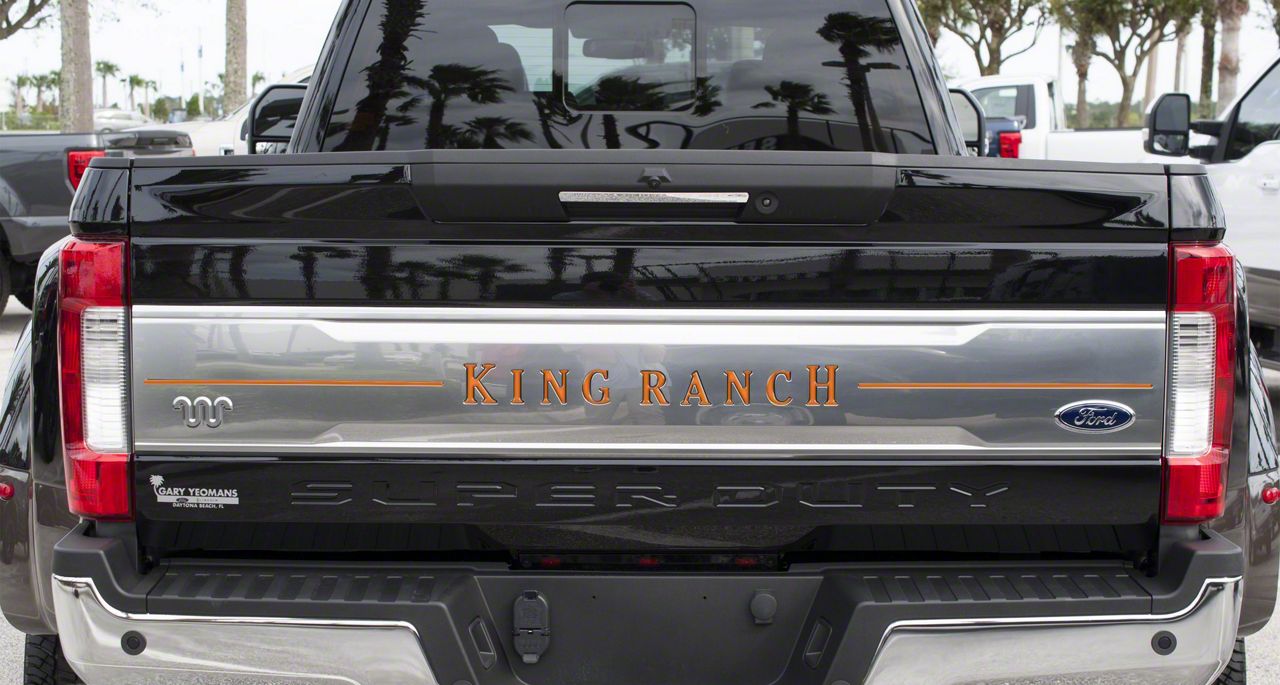 Application. The Tailgate Insert Letters; Gloss Orange fits 2017-2019 F-250 Super Duty King Ranch models.