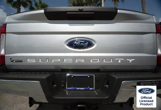 A Bold New Look for Your Car’s Tailgate. If you want to give your workhorse a bit of an aesthetic upgrade, applying these Tailgate Insert Letters in Silver Metallic will do the trick. This simple update elevates the appearance of your vehicle’s tailgate, making your Super Duty a major head-turner as a result.