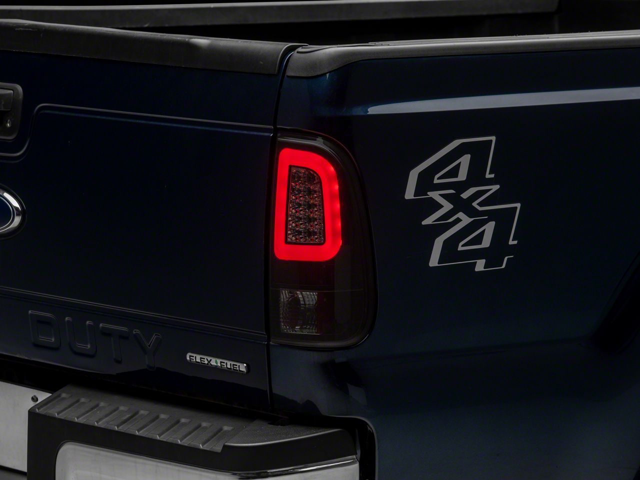 Application. The Version 3 Light Bar LED Tail Lights; Black Housing; Smoked Lens fits 2011-2016 F-250 Super Duty Models.