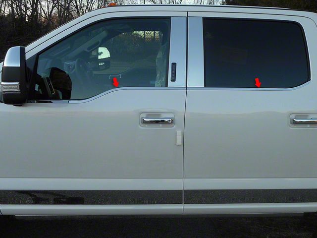 Appealing Accents. Reinforce your Ford Super Duty’s exterior by installing these Stainless Steel Window Sill Trims to protect your window sills while sporting enhanced visual appeal. Specifically, this set of window sill trims provides reliable protection from various hazards potentially hitting your window sills. Each piece comes in a shiny polished finish that gives your SuperCrew a distinctive off-road presence.